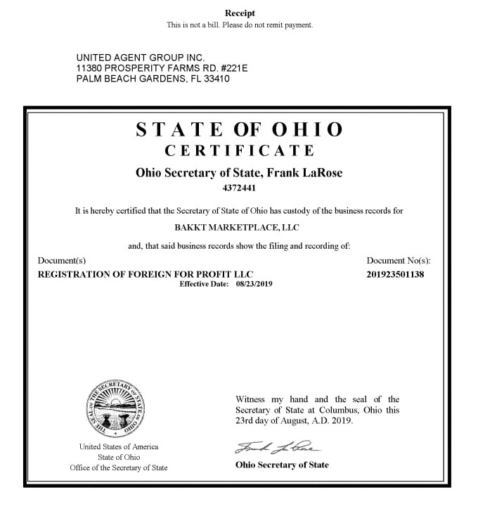 (https://cogs.ohiosos.gov/filecheck.aspx) (Certified by the Secretary of State of Wyoming)